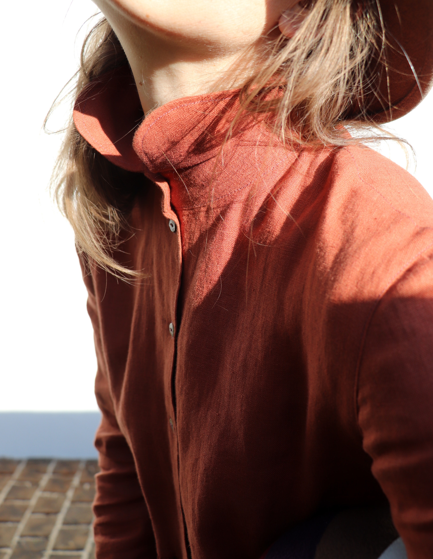Zapínání na knoflíky...dlouhý rukáv...vršek nemá rovný střih, tvarovaný na ženské křivky...dlouhý rukáv...kapsy ve švech....v pase nabírané