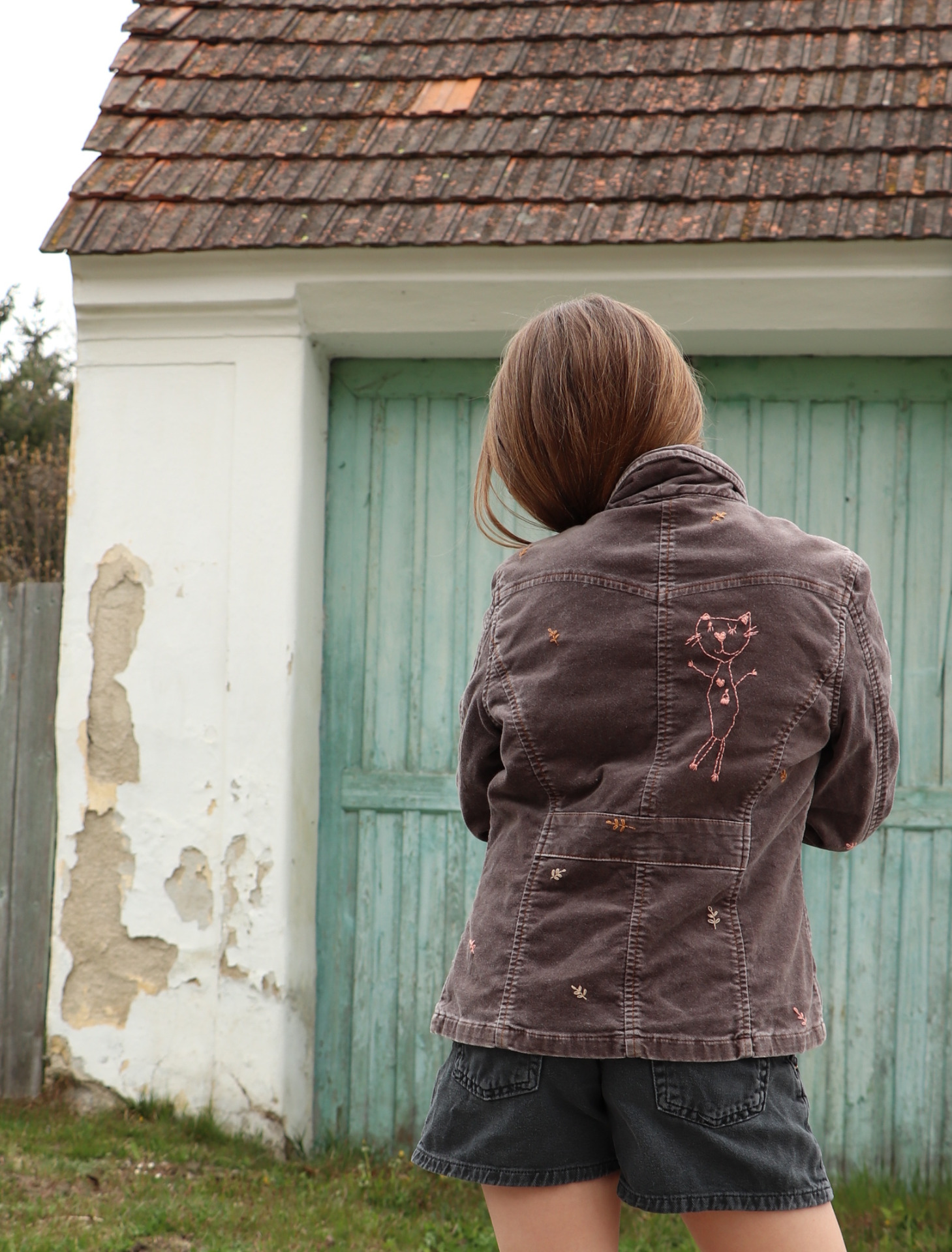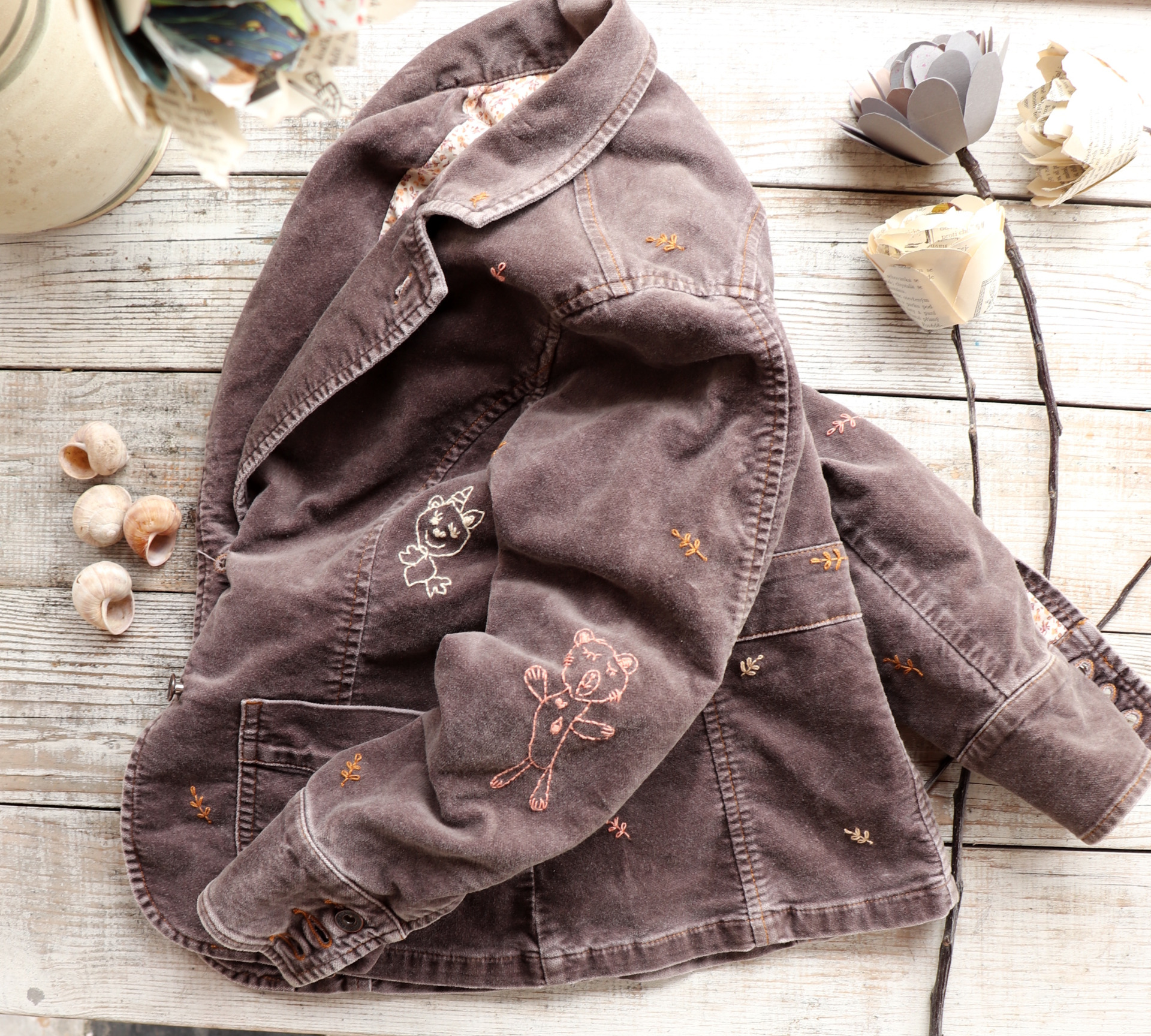 Vyšívané barevnou vyšívací přízí...ladeno v tónech podšívky
