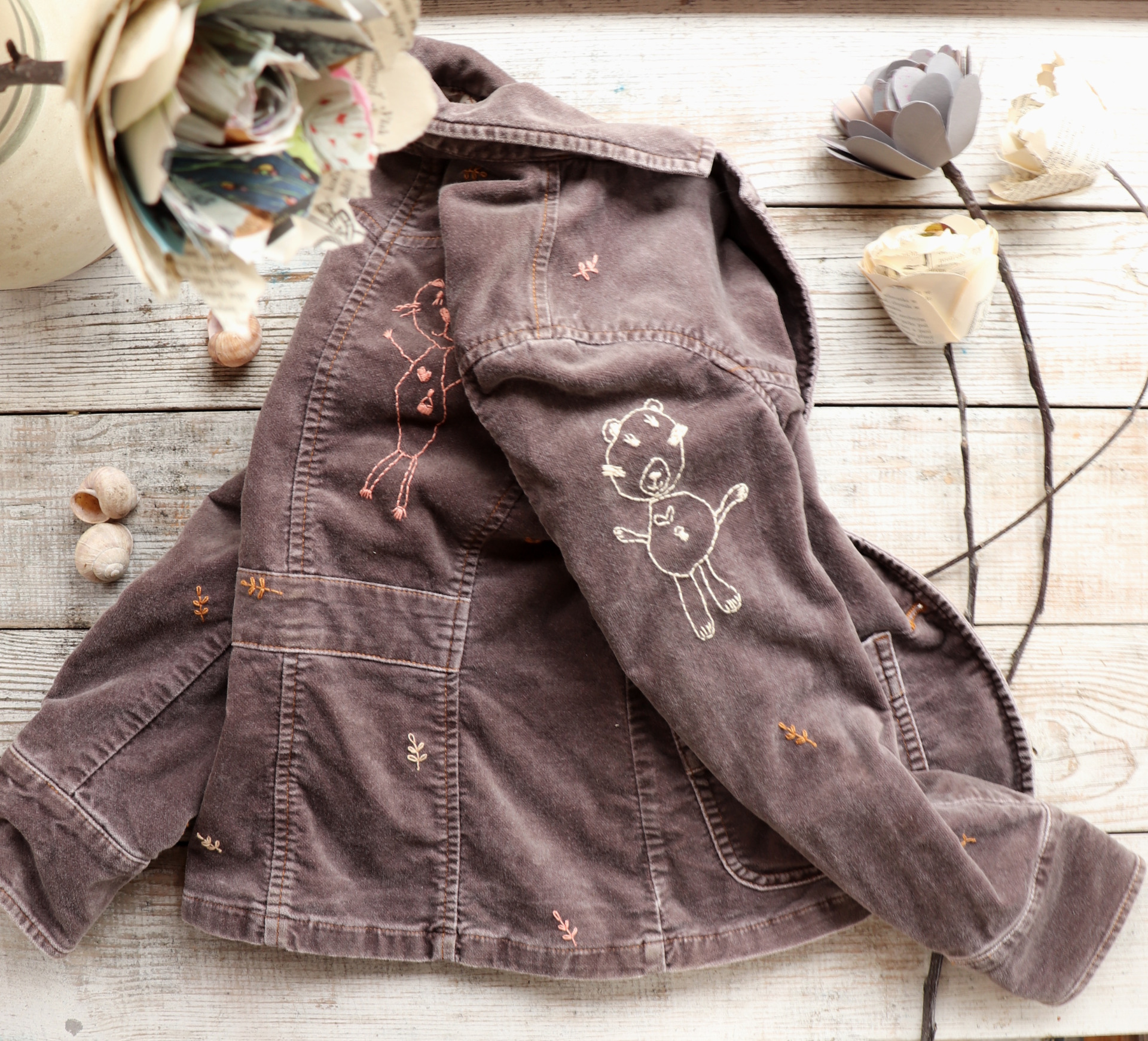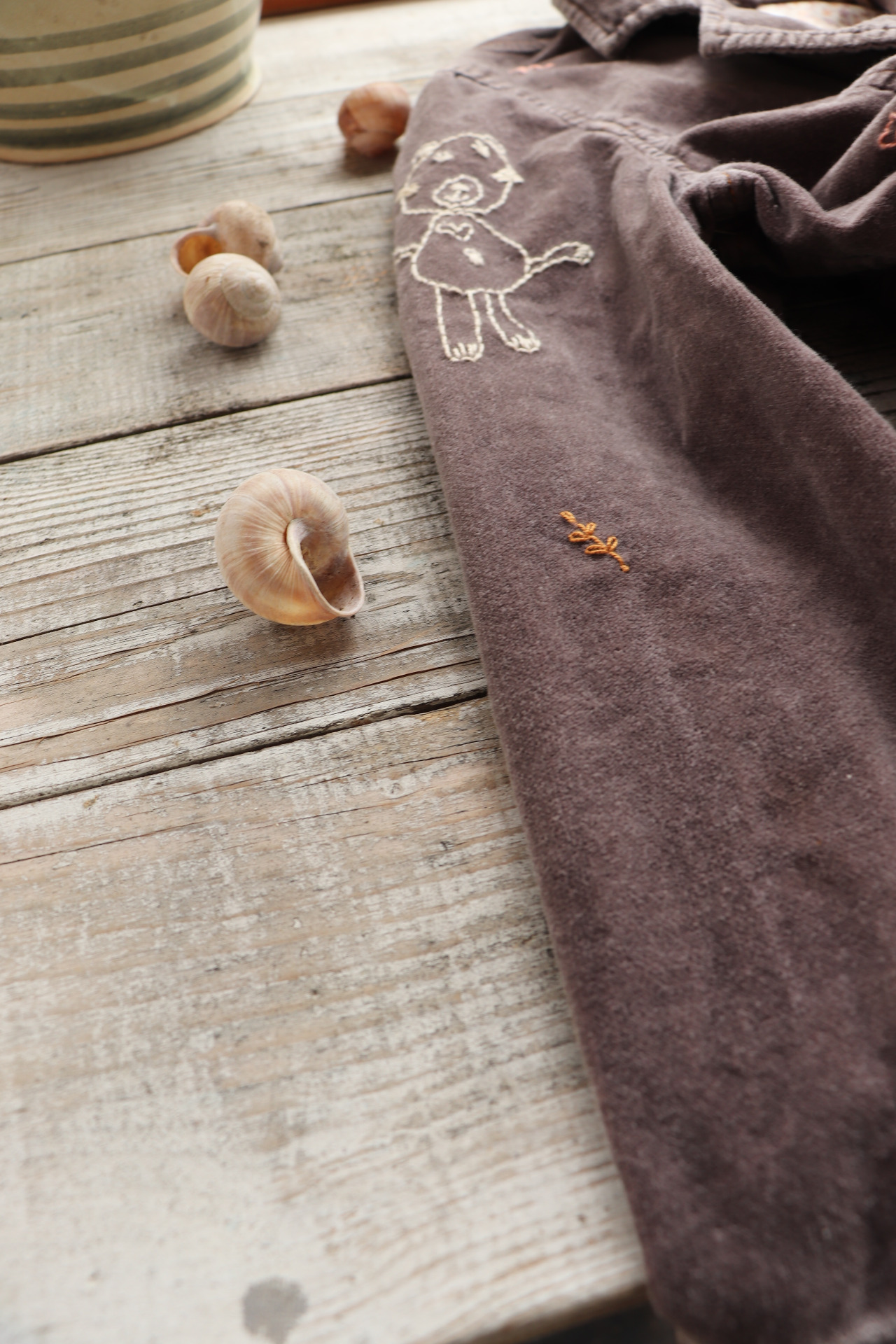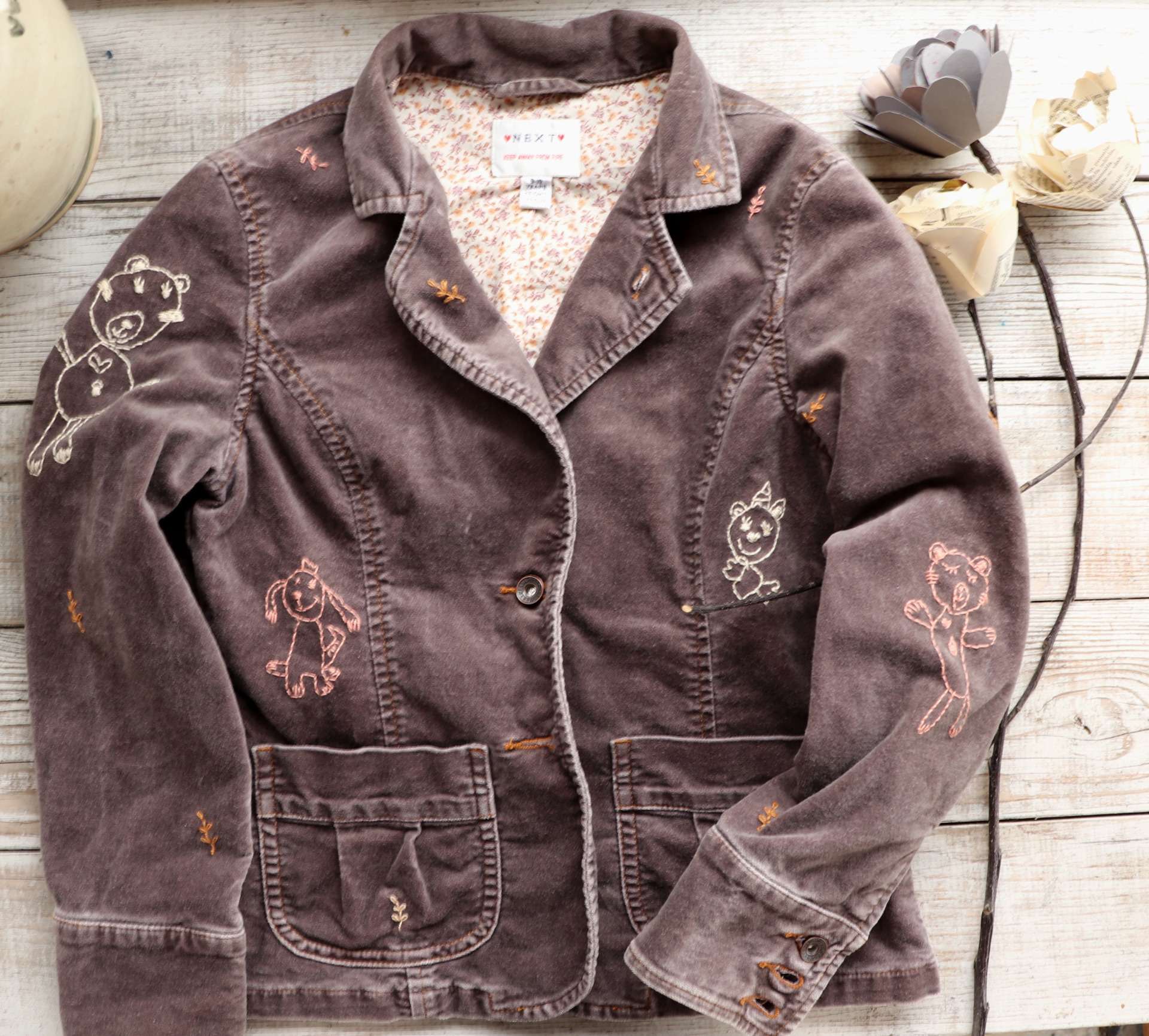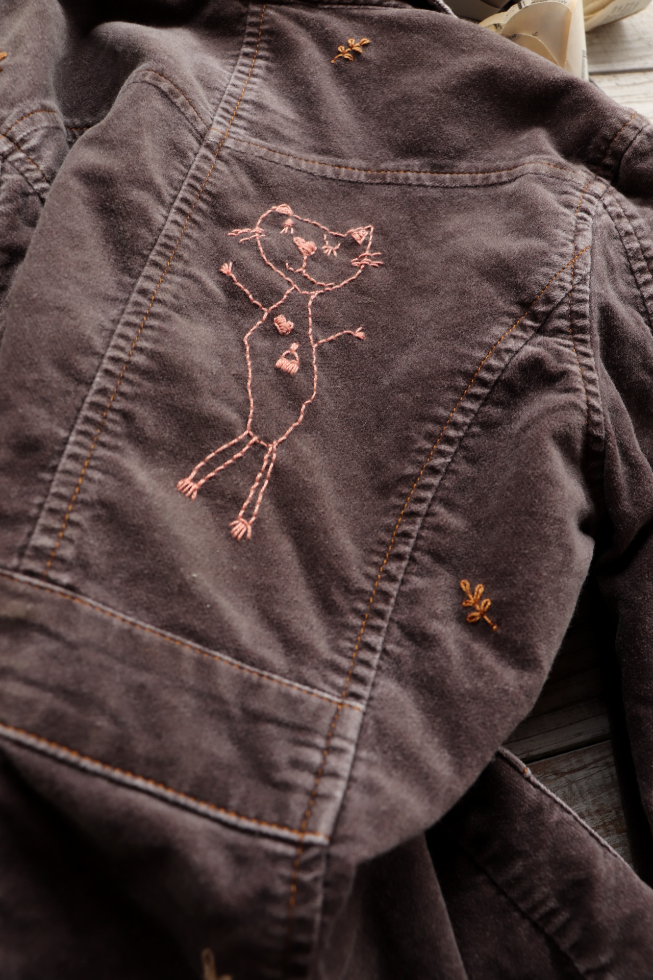 Sáčko jsem řádně vyprala a ručně vyšila motivy dobře známých dětských obrázků a větviček. ..volnou rukou