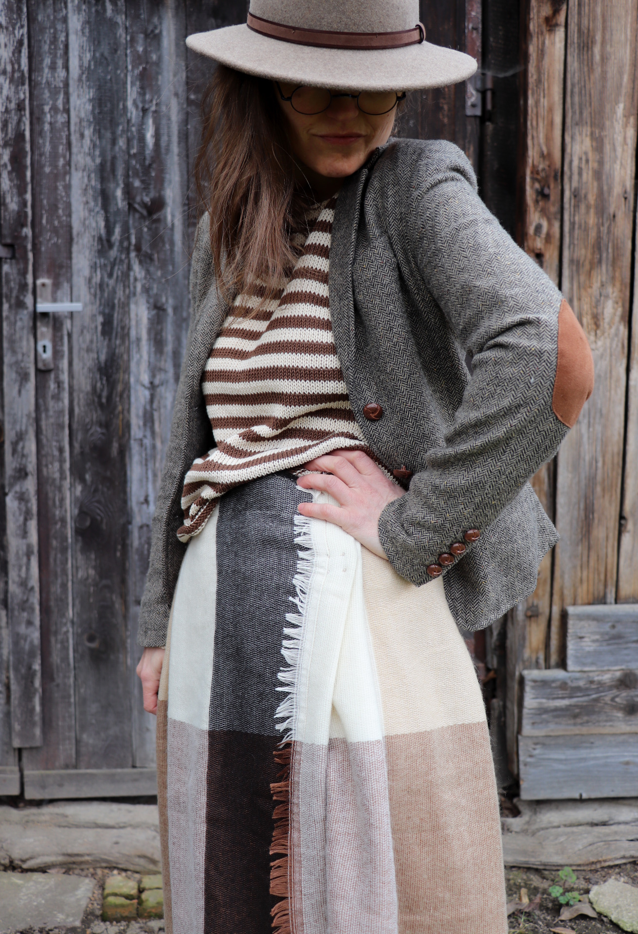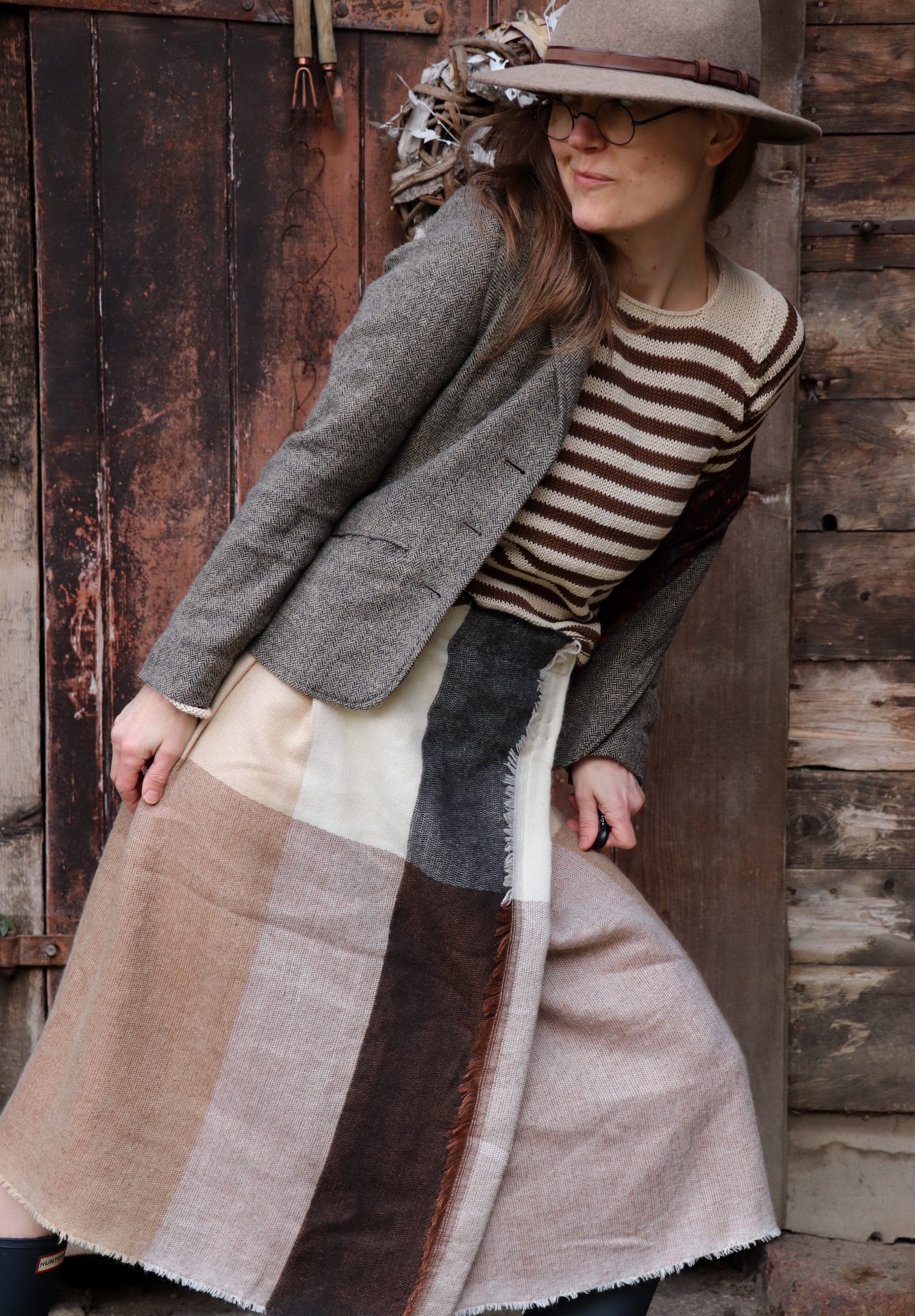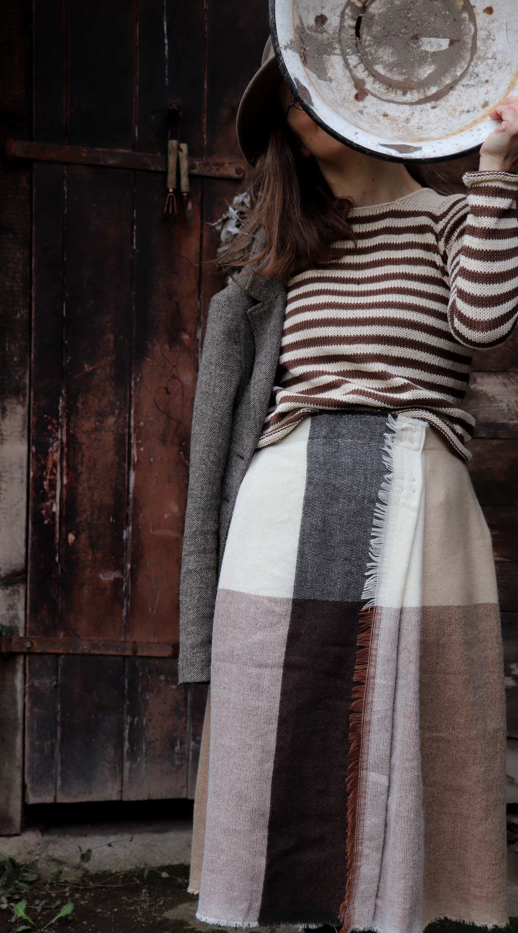 Z šály zavinovací skládaná sukně. Třepení z šály jsem záměrně zanechala.