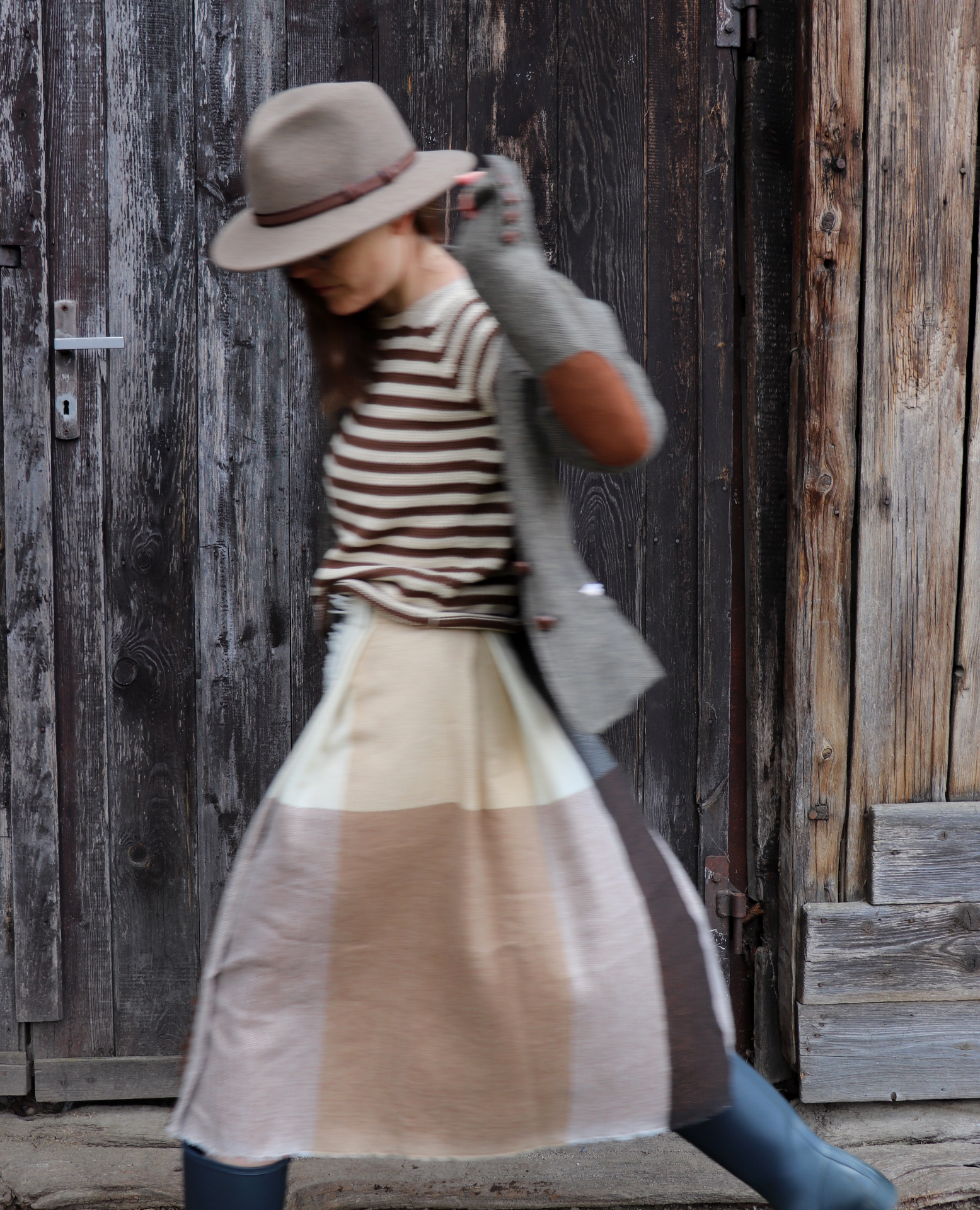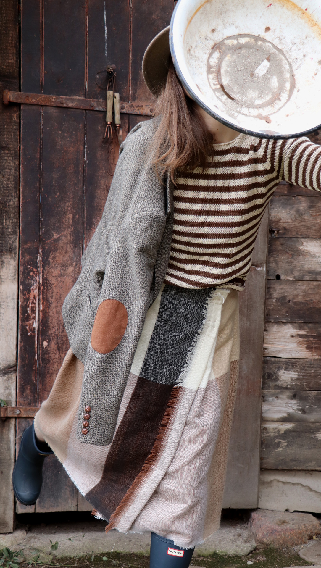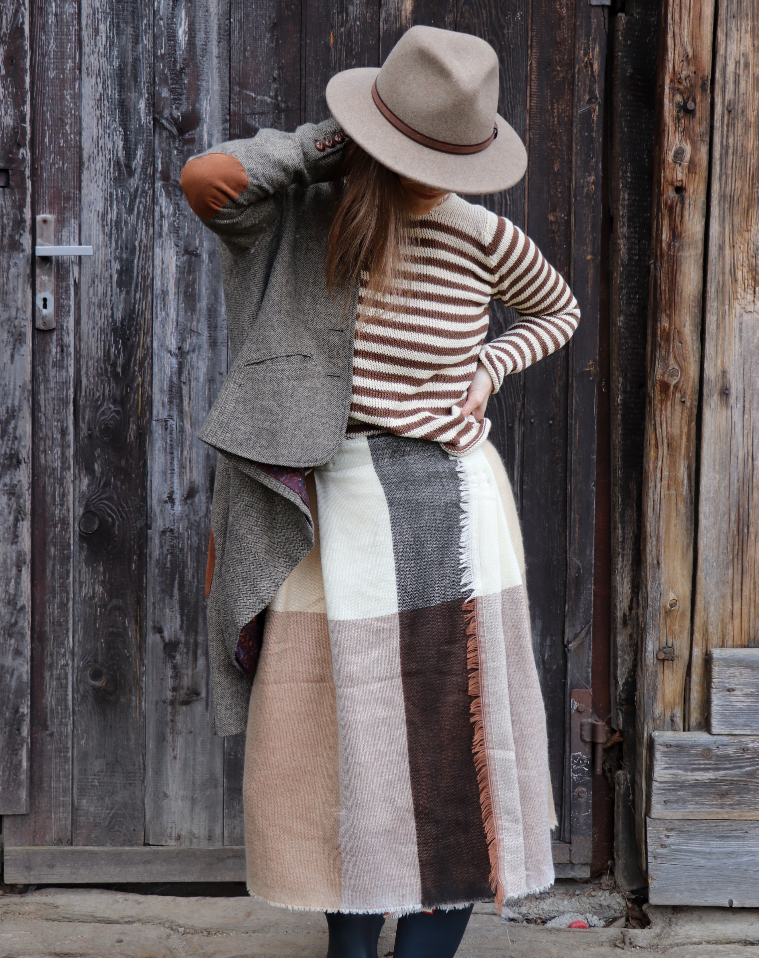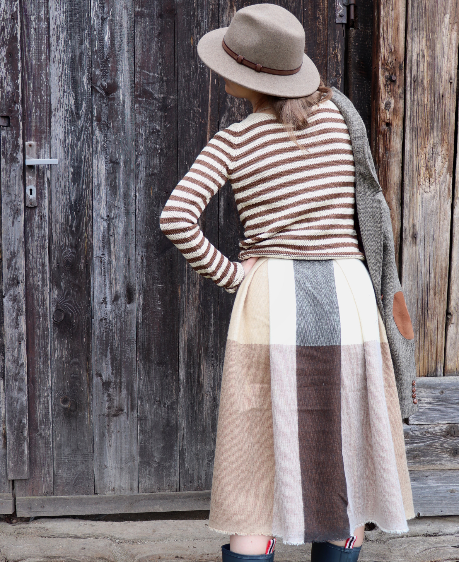 Z šály zavinovací skládaná sukně. Třepení z šály jsem záměrně zanechala.