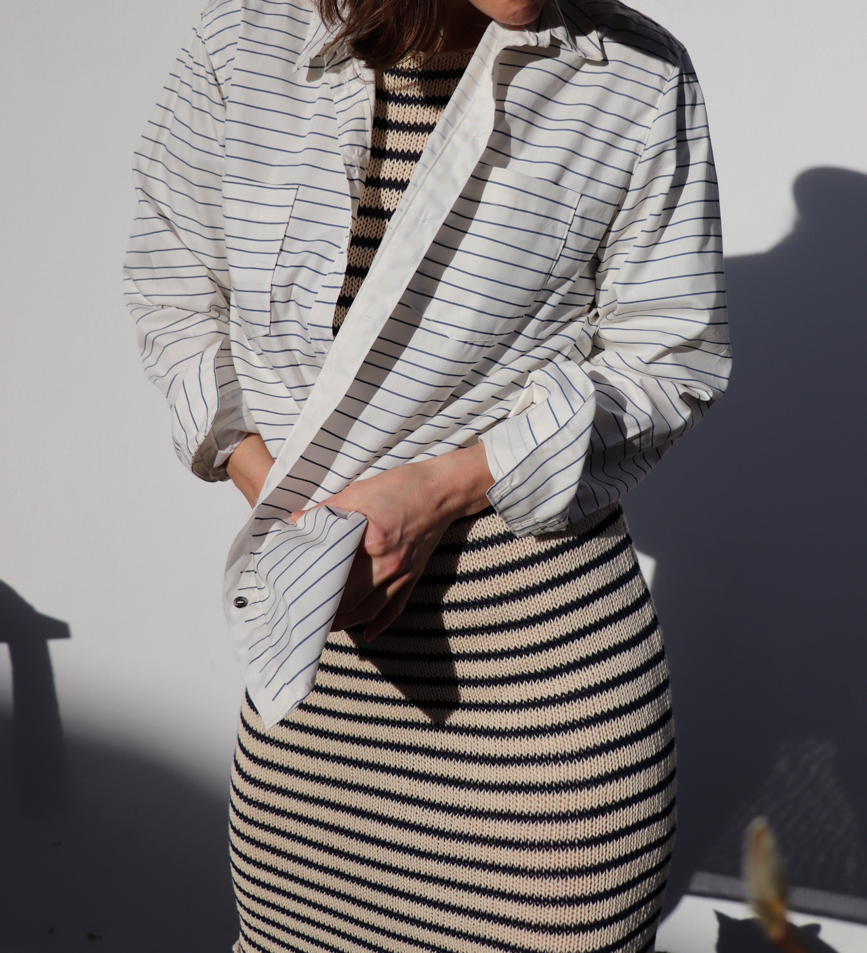 Dámská košile oversize střihu s ručně linkovaná...proužek za proužkem
