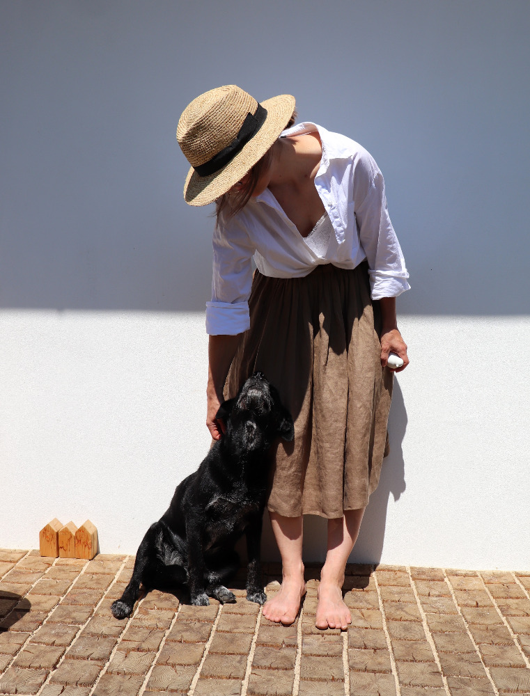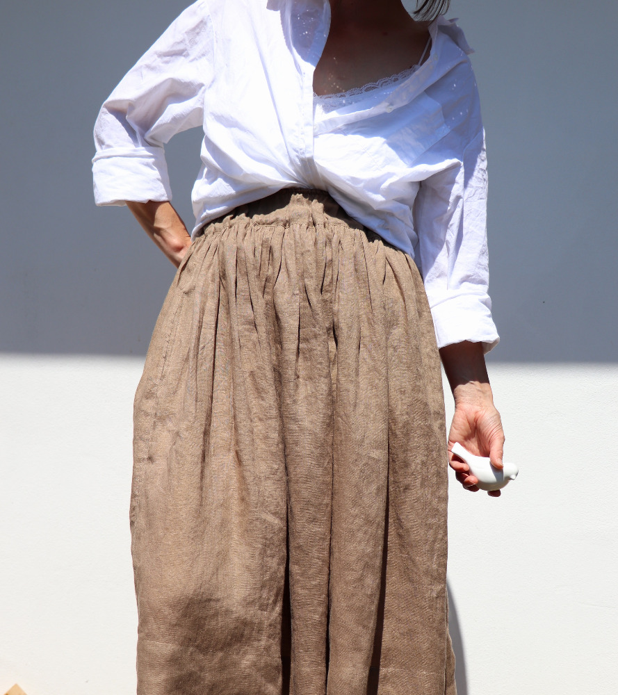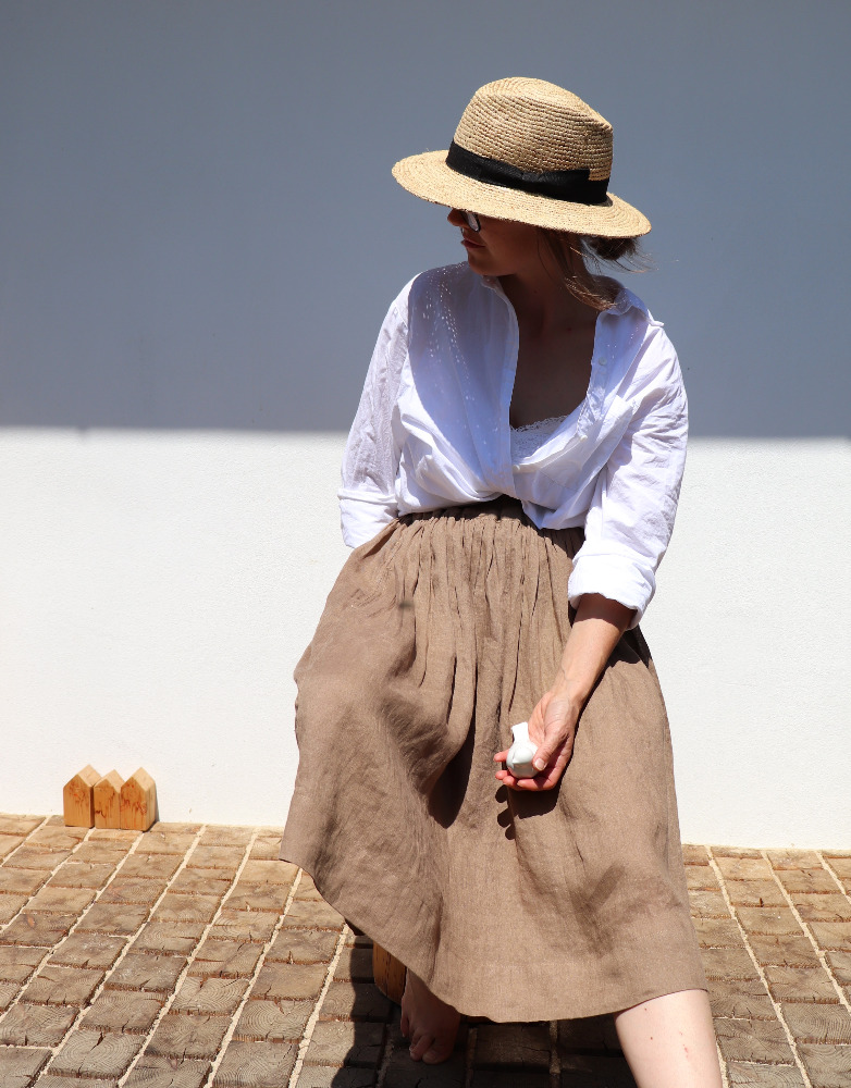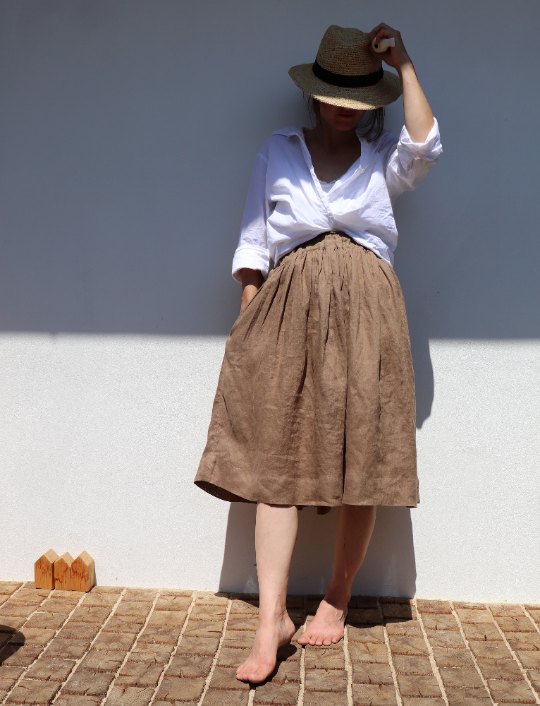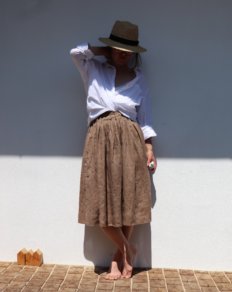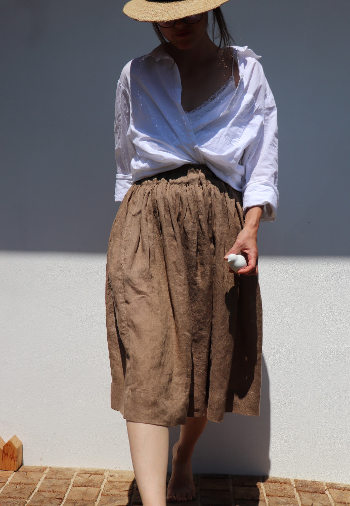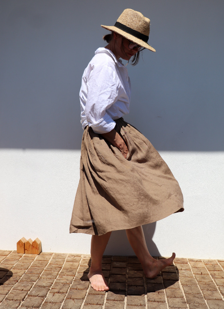 Dámská sukně z nádherného béžového lnu ČESKÉ VÝROBY
