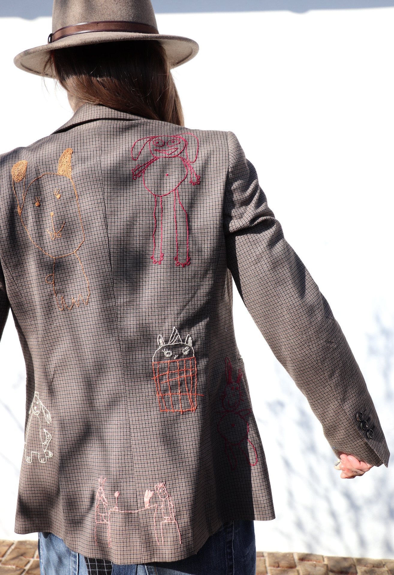 Sáčko jsem řádně vyprala a ručně vyšila motivy dětských kreseb...co obrázek, to originál...přesně proto dětské kresby miluju...
