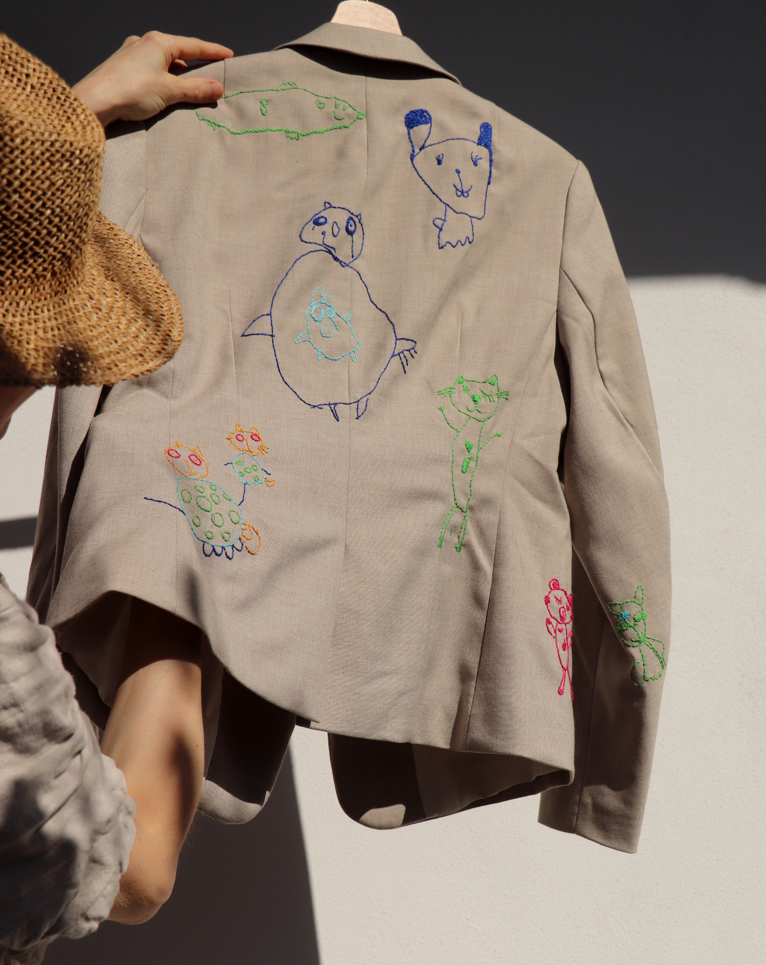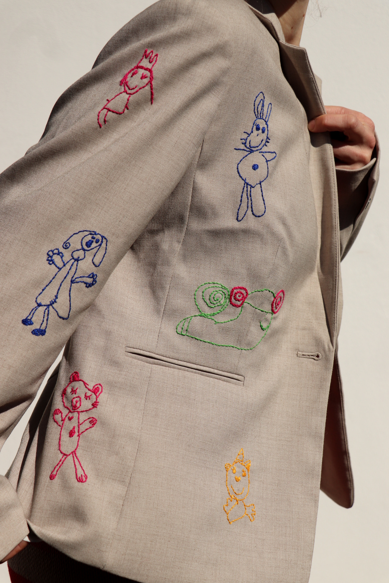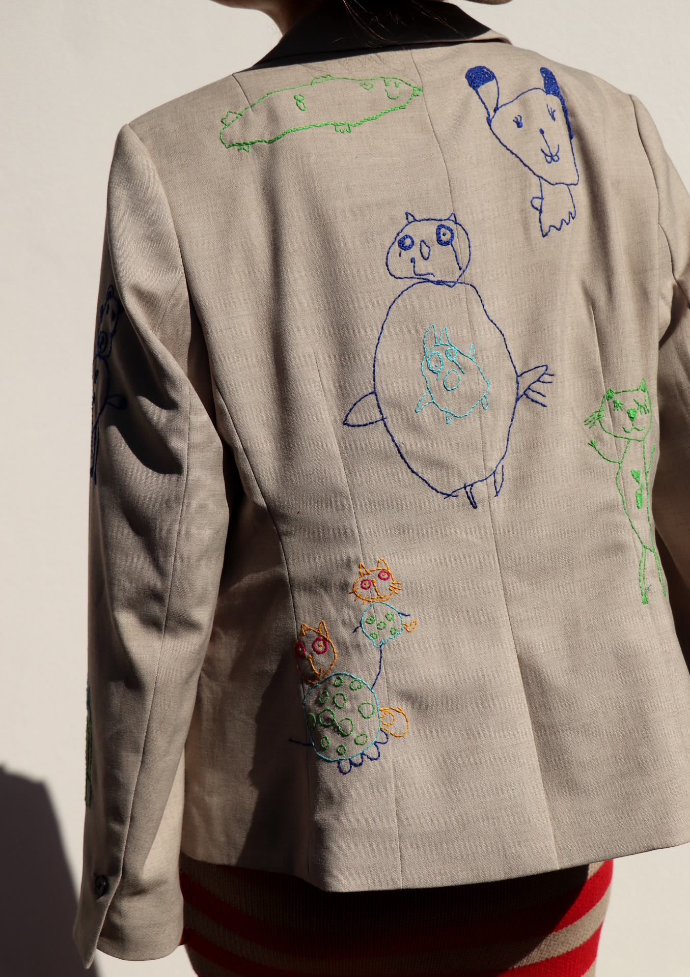 Sáčko jsem řádně vyprala a ručně vyšila motivy dětských kreseb...co obrázek, to originál...přesně proto dětské kresby miluju...