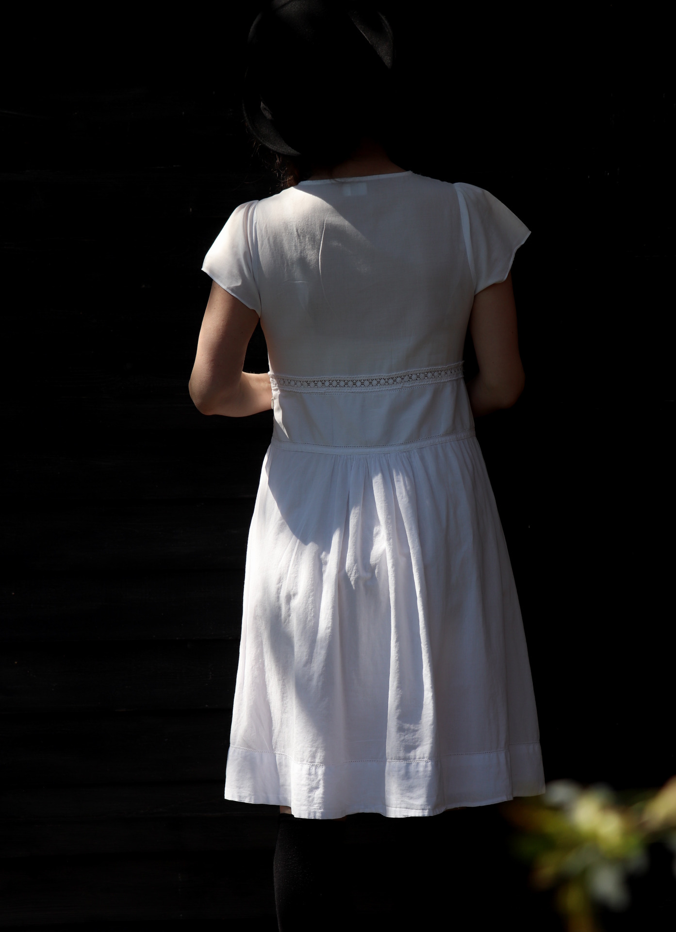 Skrytý zip na sukni jsem ponechala a dá se mi oblékání povolit.