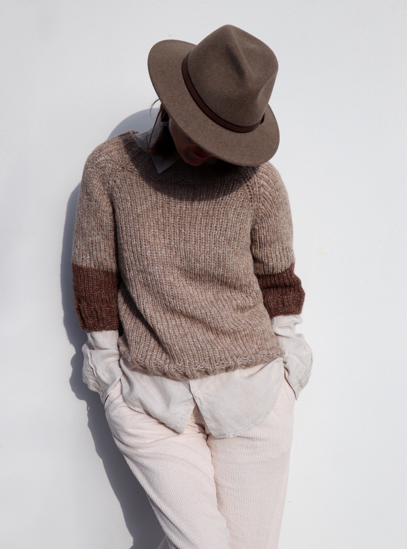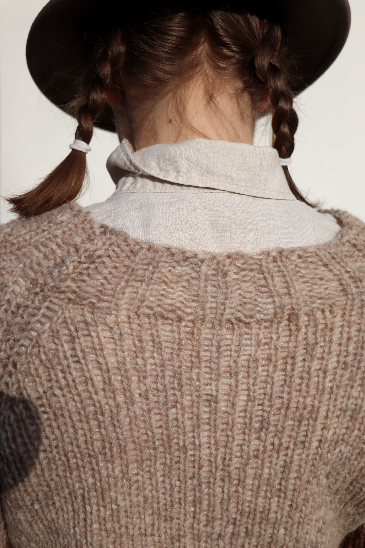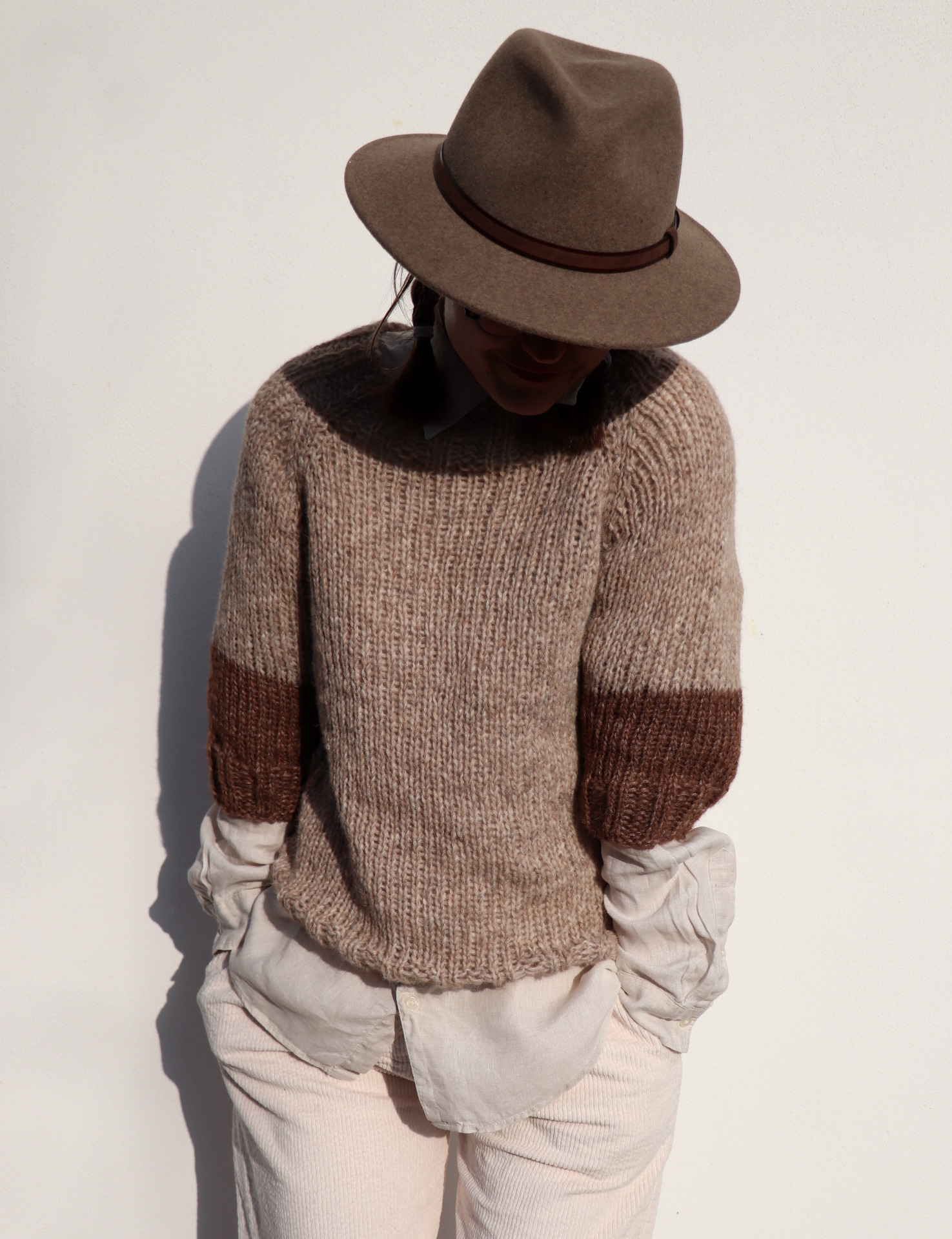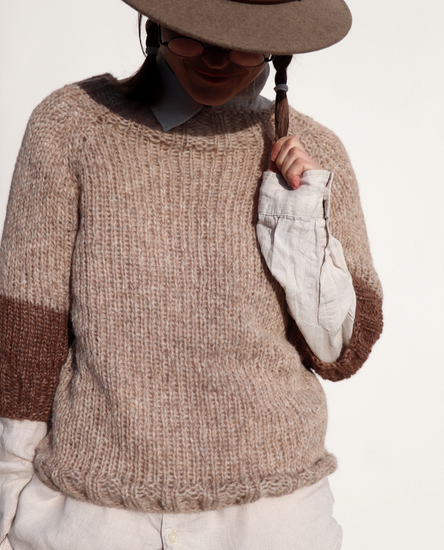 Dámský svetr s raglánovým rukávem v béžovohnědé barvě