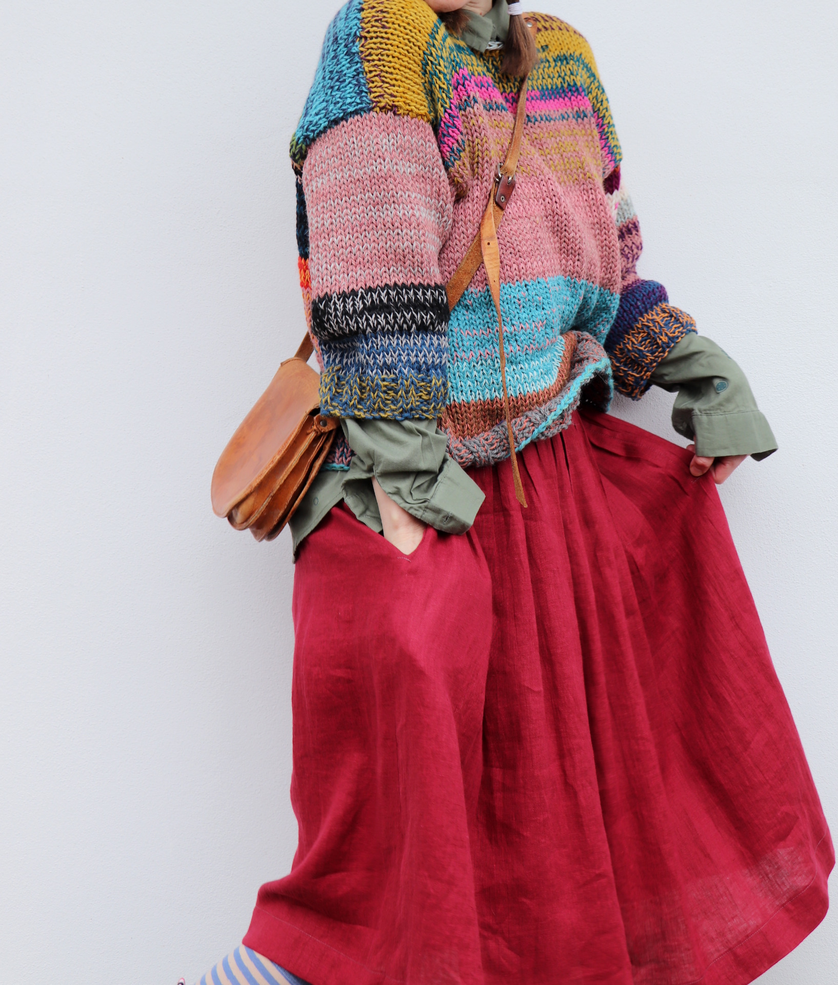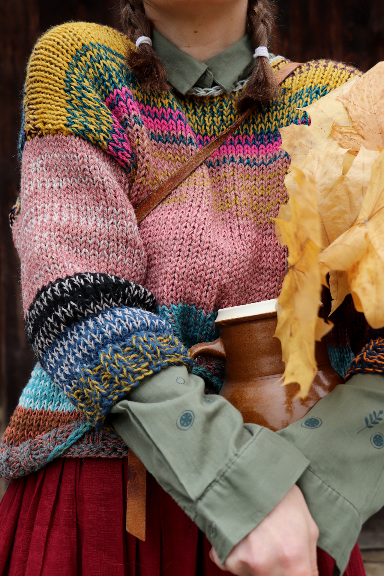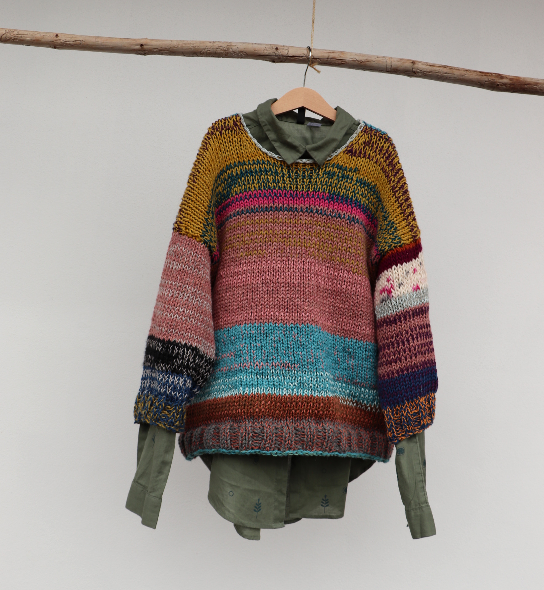 Originální svetr z mixu přízí...od bavlny přes vlnu po alpacu