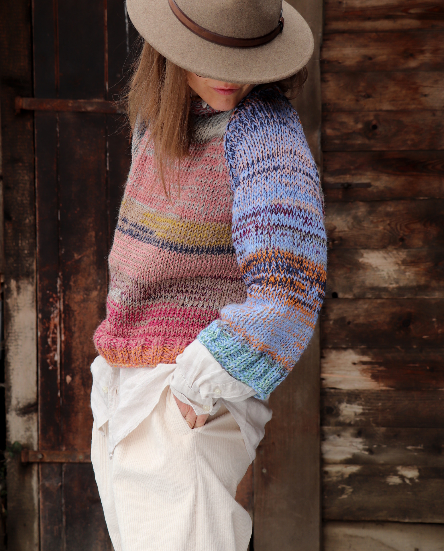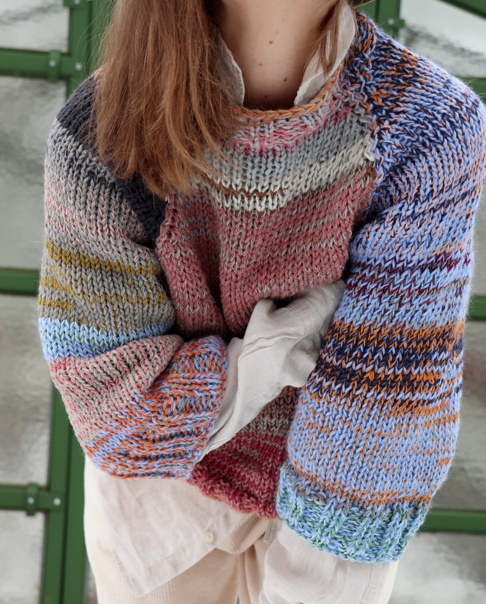 Originální svetr z mixu přízí...od bavlny přes vlnu po alpacu