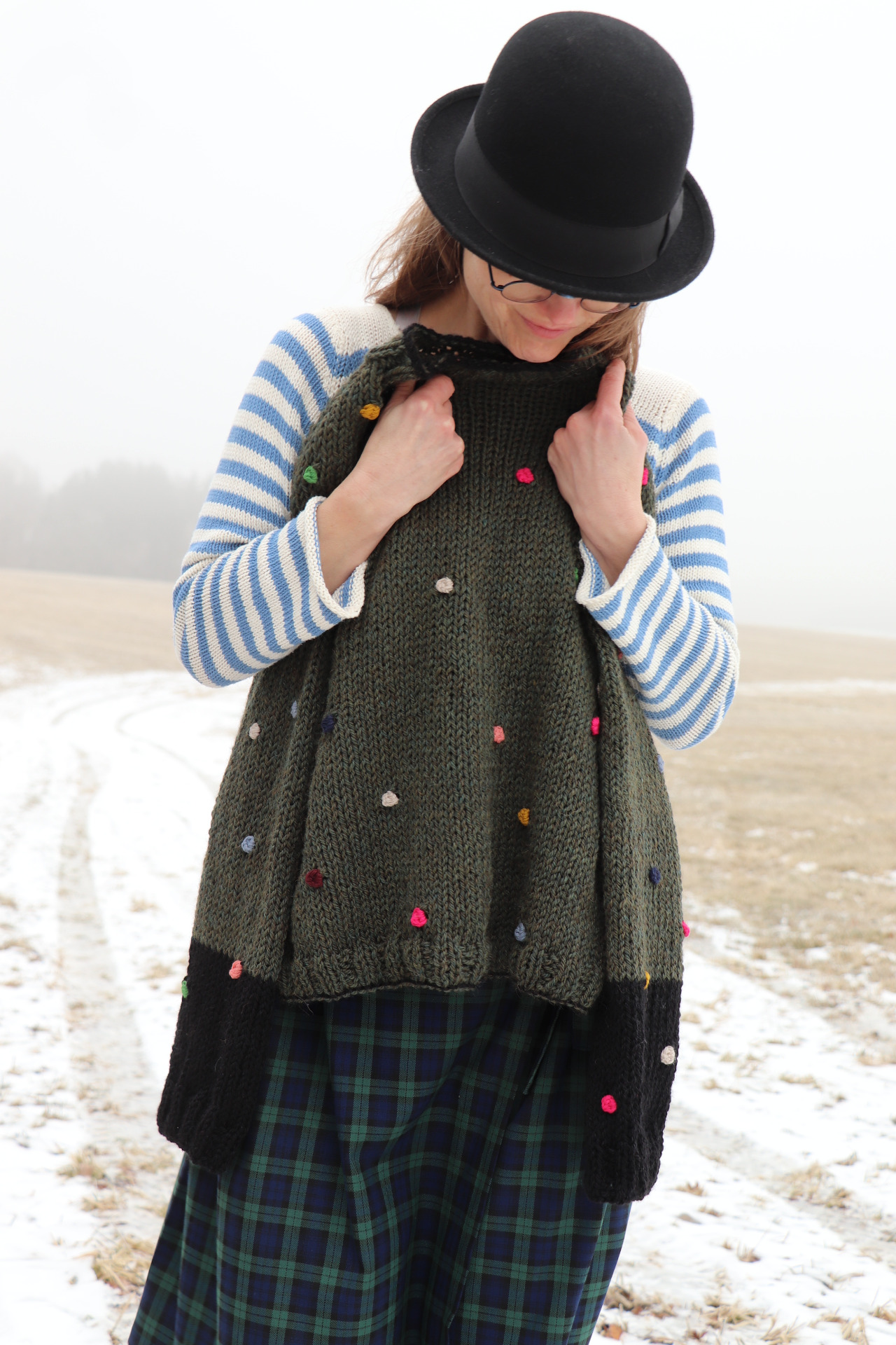 puntíky vháčkované, nepravidelně rozmístěné z kvalitního merina