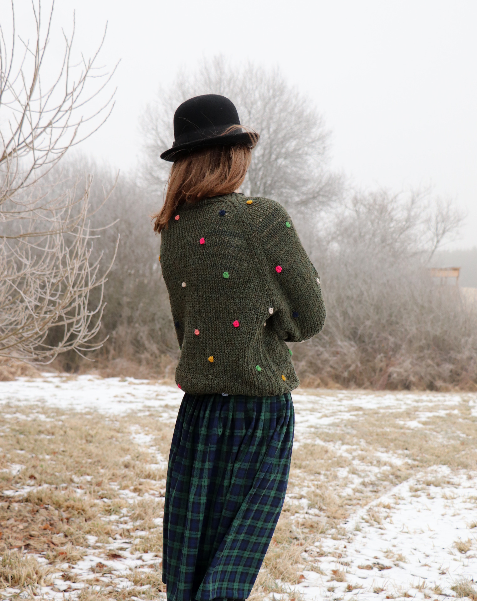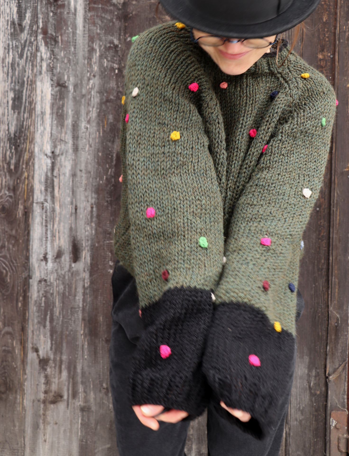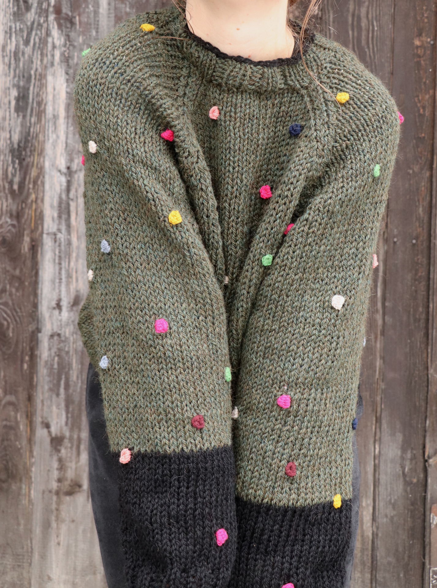 Originální svetr z vlny s barevnými puntíky